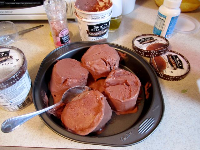 So what did I do? Went to Wild By Nature (basically, a closer to me Whole Foods) and bought 4 pints of So Delicious Coconut Milk ice cream AND Newman’s Own Organics Alphabet cookies. I basically looked at every single chocolate wafer cookie and found one with minimal ingredients that I could read. (These cookies won because they only had 3-4 ingredients. Winner!)